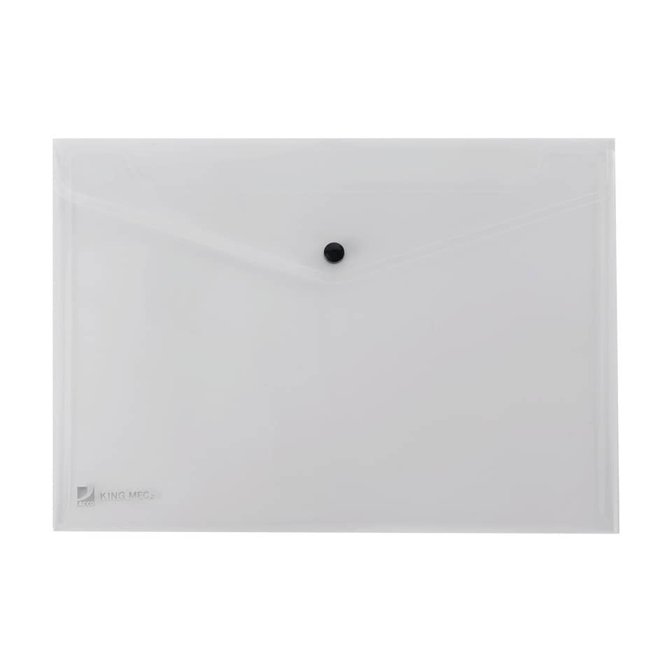 Busta in polipropilene trasparente. Chiusura con bottone a pressione in plastica. Capace di contenere non solo documenti, ma anche oggetti come calcolatrici, agende, penne. Colore trasparente. Formato utile 21x29,7 cm. Codice produttore: 00111318