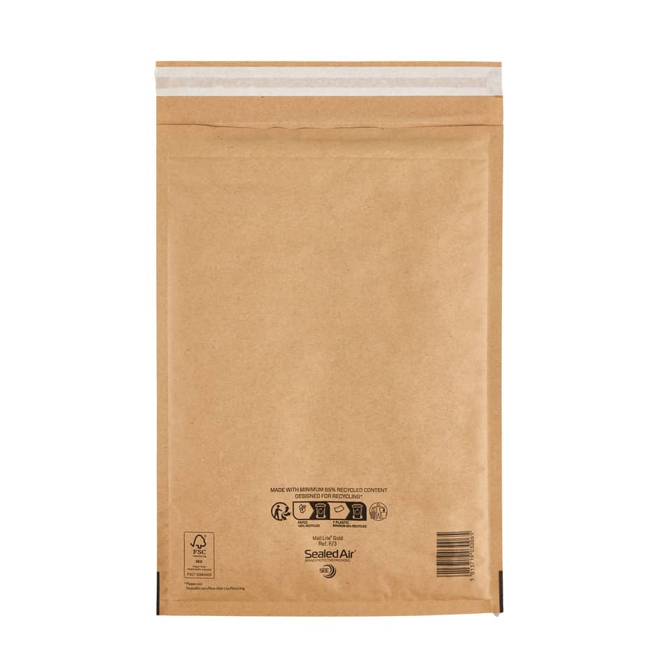 Buste Imbottite in carta avana ecologiche con imbottitura in pluriball. Leggere e resistenti, le buste Mail Lite® Gold consentono di risparmiare fino al 35% sulle tariffe di spedizione postale rispetto agli imballi tradizionali, garantendo contemporaneamente un'elevata protezione dei prodotti. Misura 22x33cm. Codice produttore: 103027405