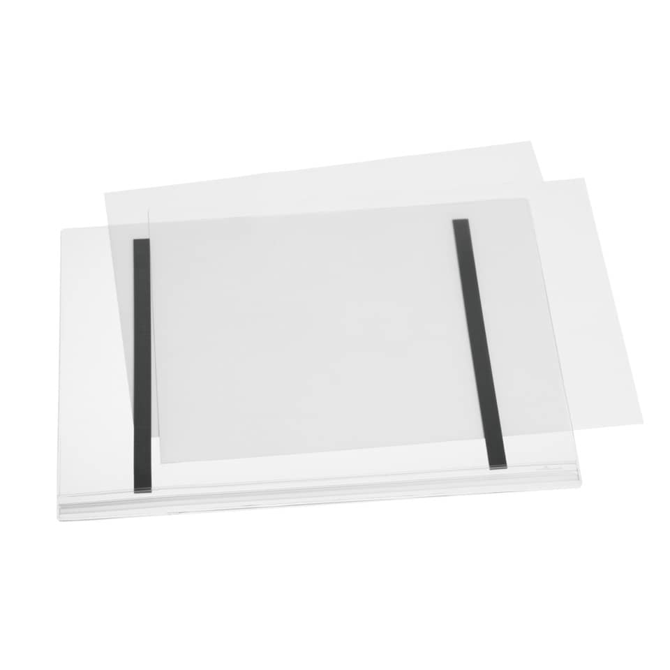 Le buste impermeabili sono ideali per esporre informazioni in aree esterne come parchi, saune, piscine oppure su cancelli e bacheche, dove i documenti possono entrare a contatto con spruzzi d'acqua. La chiusura ermetica a pressione protegge il contenuto della busta in particolare da pioggia, umidità e sporco. Magnetiche: applicabili tramite 2 strisce magnetiche con elevata forza d'attrazione presenti sul retro (forza di attrazione: 0,95 N/cm2 per striscia magnetica). Testate secondo lo standard IPX5 (protezione contro i getti d'acqua provenienti da tutte le direzioni). Trasparenti, con stabilizzatore UV e resistenti agli eventi atmosferici, antigraffio e con effetto antiriflesso. Possono essere utilizzate sia in formato verticale sia in orizzontale. Sostituzione degli inserti facile e veloce. Capacità: 2 fogli da 160 g/m2, inclusi nella confezione. Template gratuiti scaricabili dal sito www.duraprint.it. Formato utile: A3. Dimensioni: 335x445x0,6mm(LxHxP). Confezione da 5 pezzi.