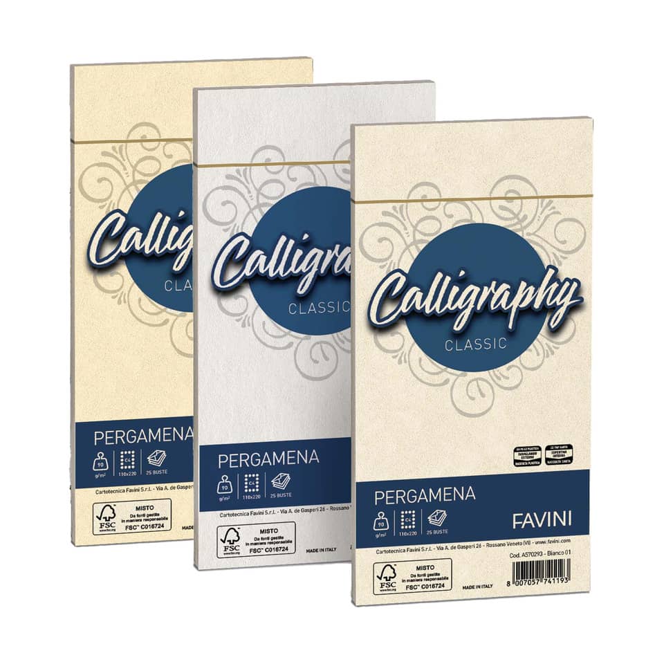 Calligraphy Favini Pergamena Liscio – Crema – Buste per carta da lettere 11×22 cm – 90g/m² – A572203 (conf.25)