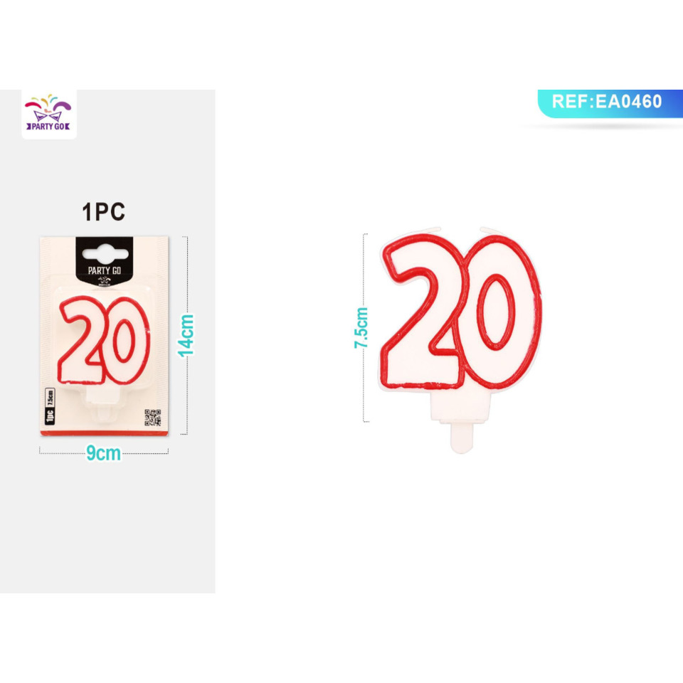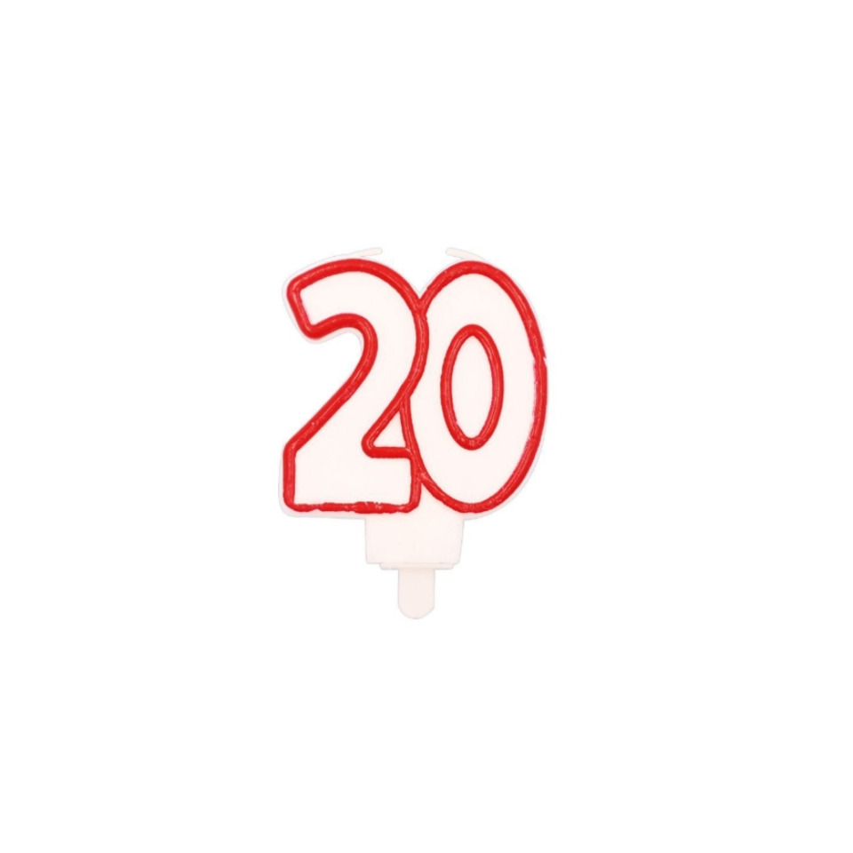 Candelina Party Go bianca e rossa H.7,5 cm 20 anni EA0460
