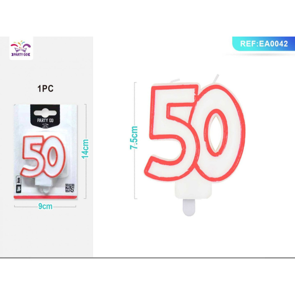 Candelina Party Go bianca e rossa H.7,5 cm 50 anni EA0042