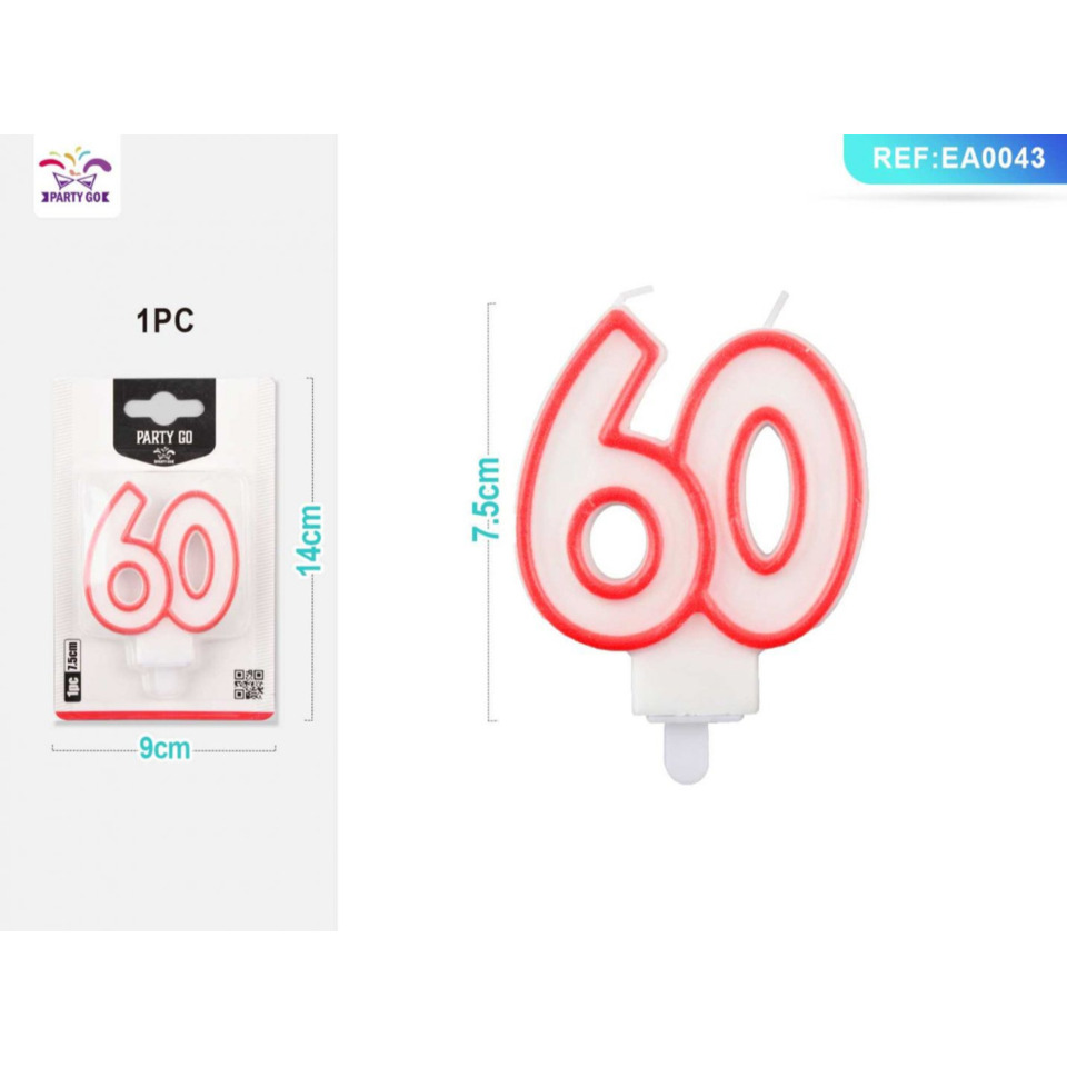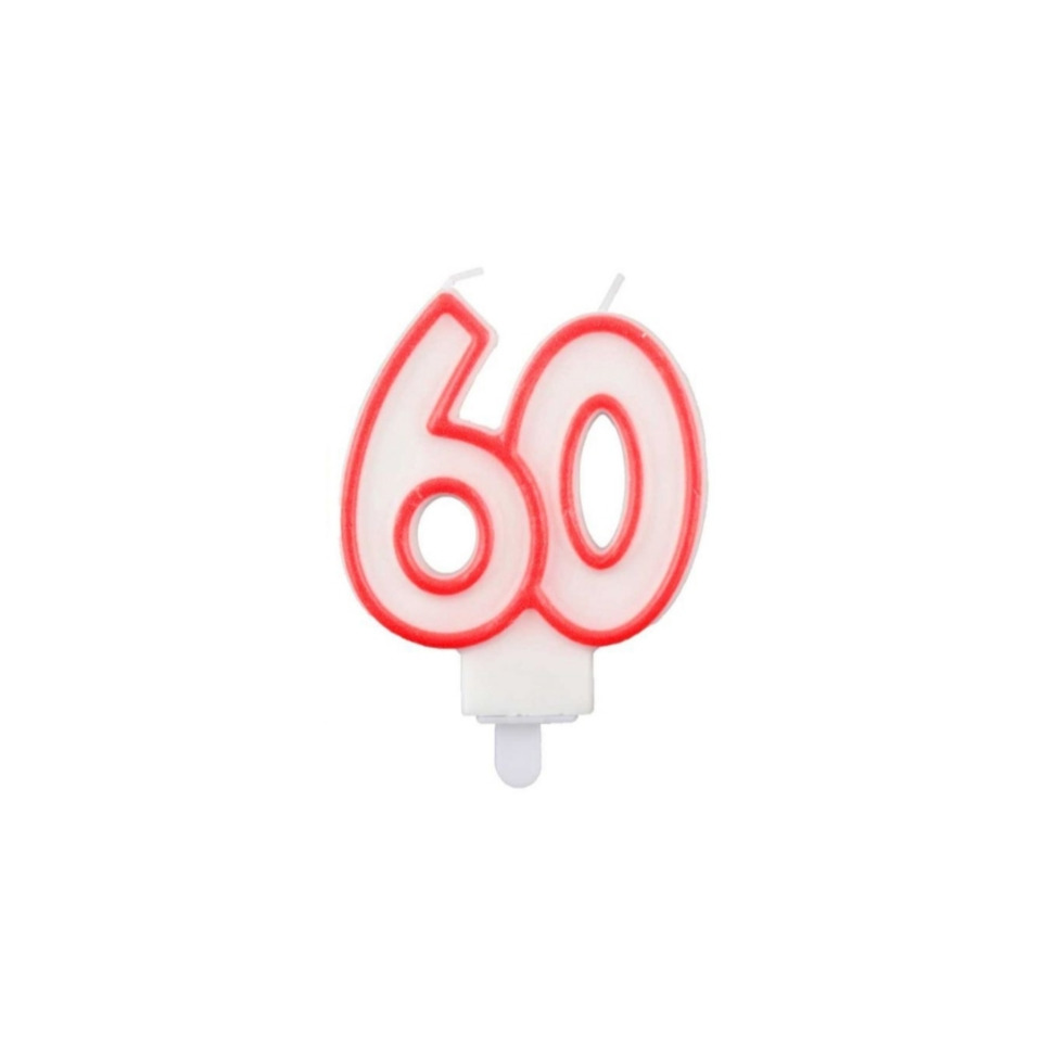 Candelina Party Go bianca e rossa H.7,5 cm 60 anni EA0043
