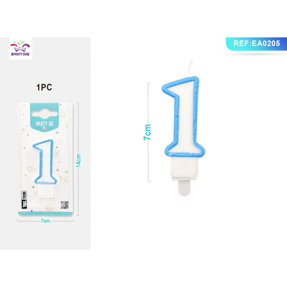Candelina Party Go bianco e azzurro H.6 cm n° 1 EA0205