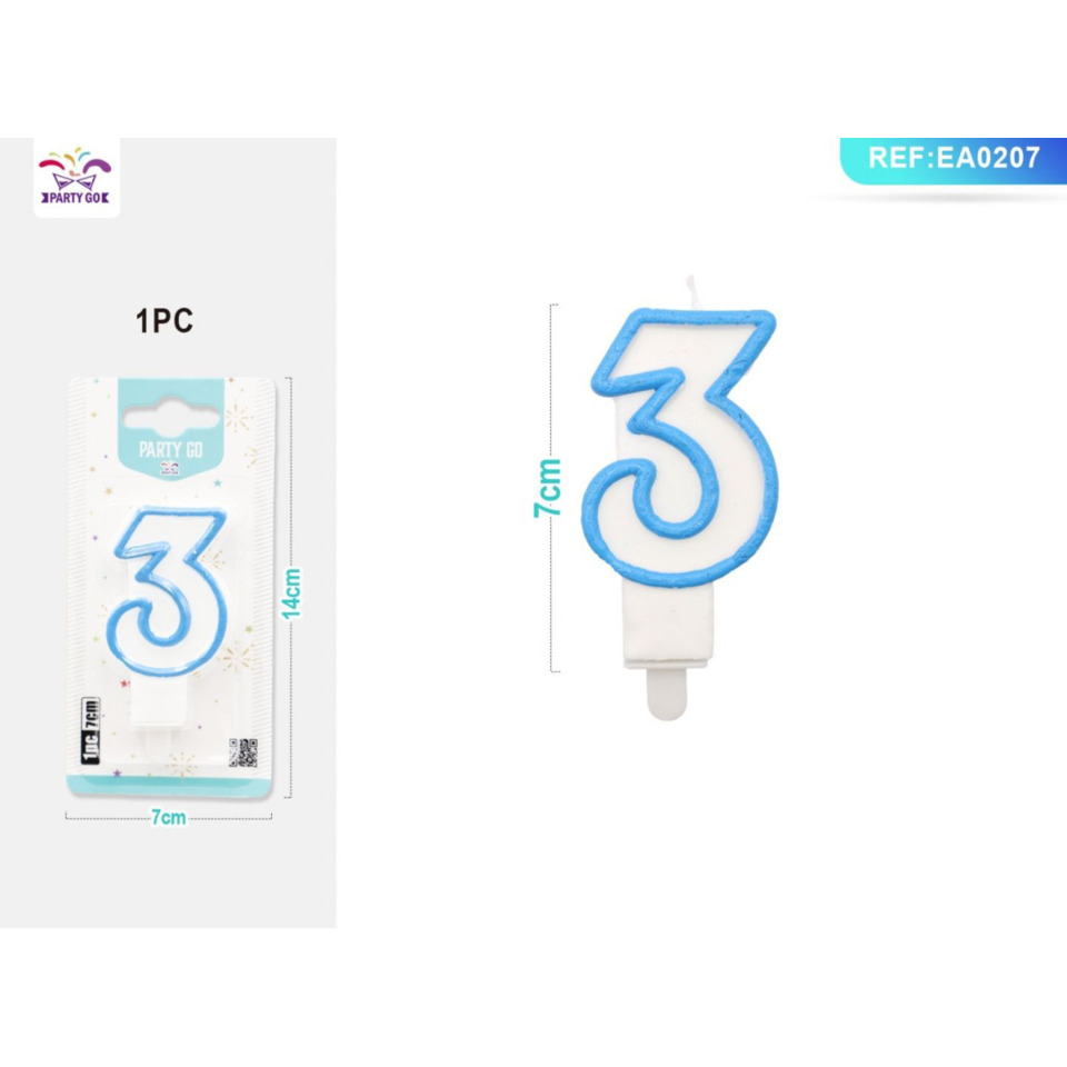 Candelina Party Go bianco e azzurro H.6 cm n° 3 EA0207