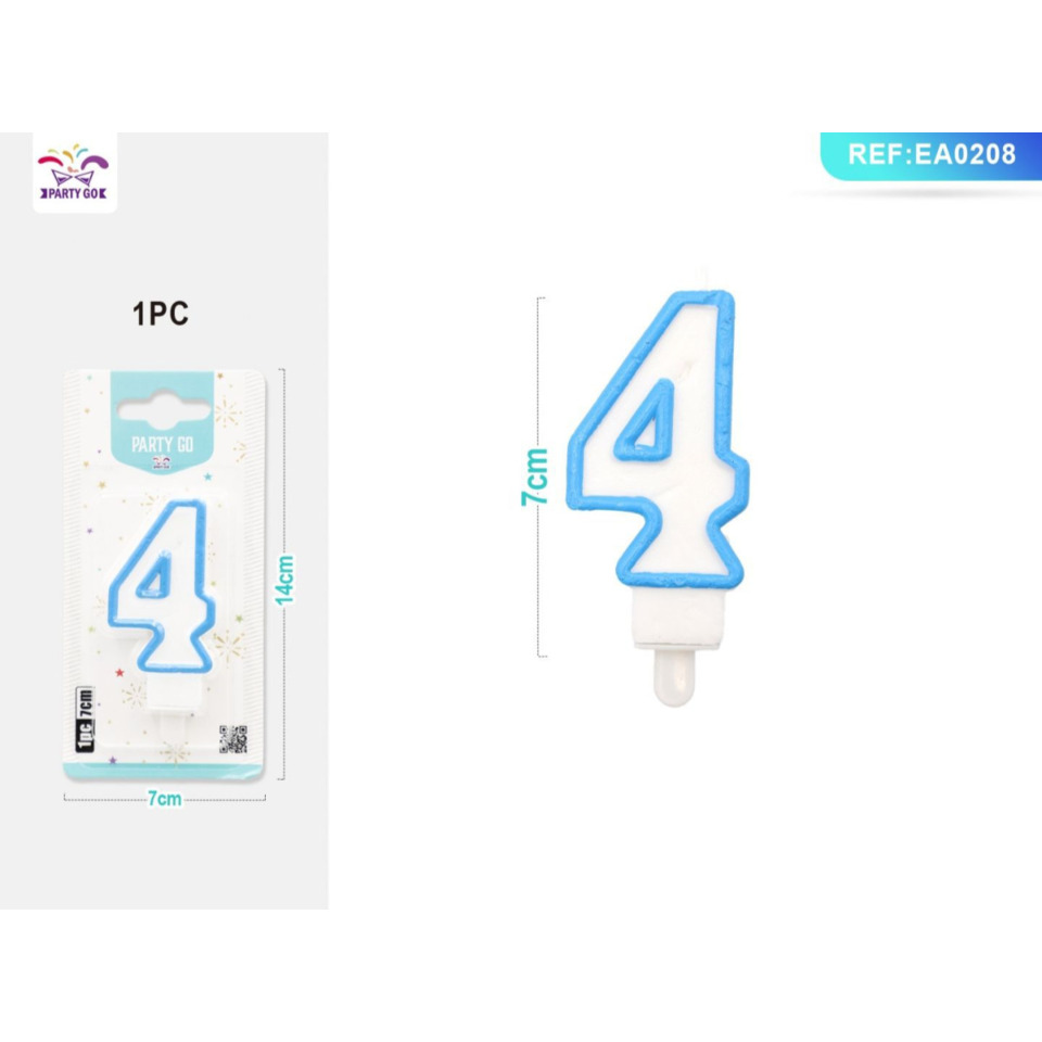 Candelina Party Go bianco e azzurro H.6 cm n° 4 EA0208