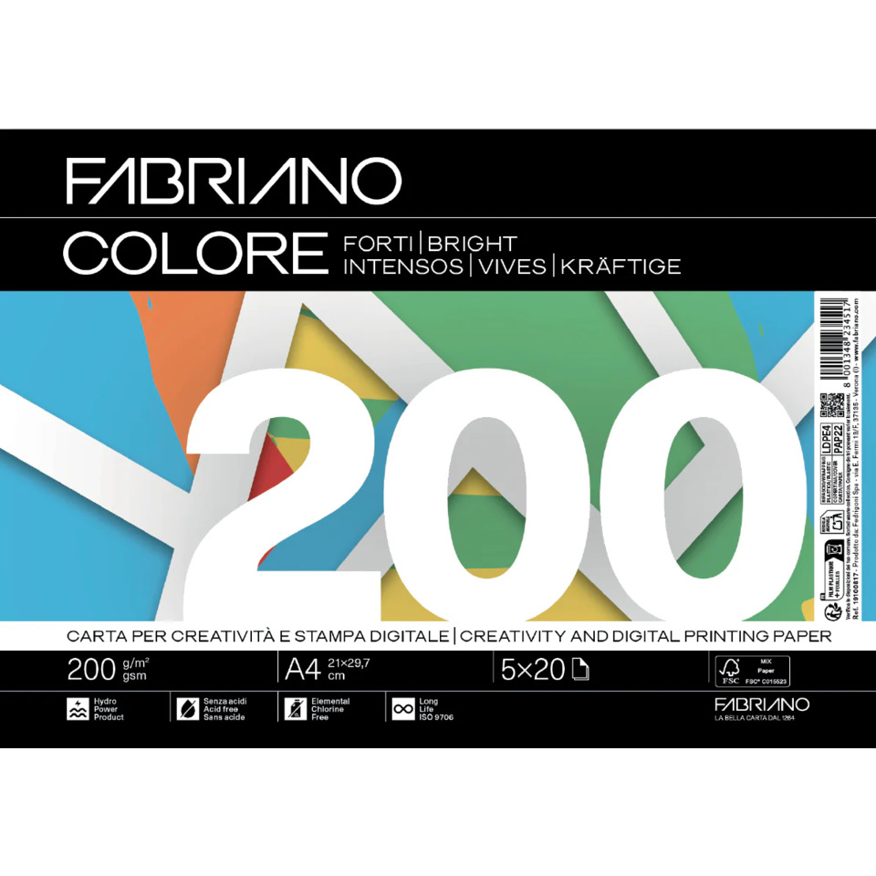 Carta colorata Copy Tinta 200g/m² Fabriano A4 – colori forti – 69121297 (risma 100 fogli)