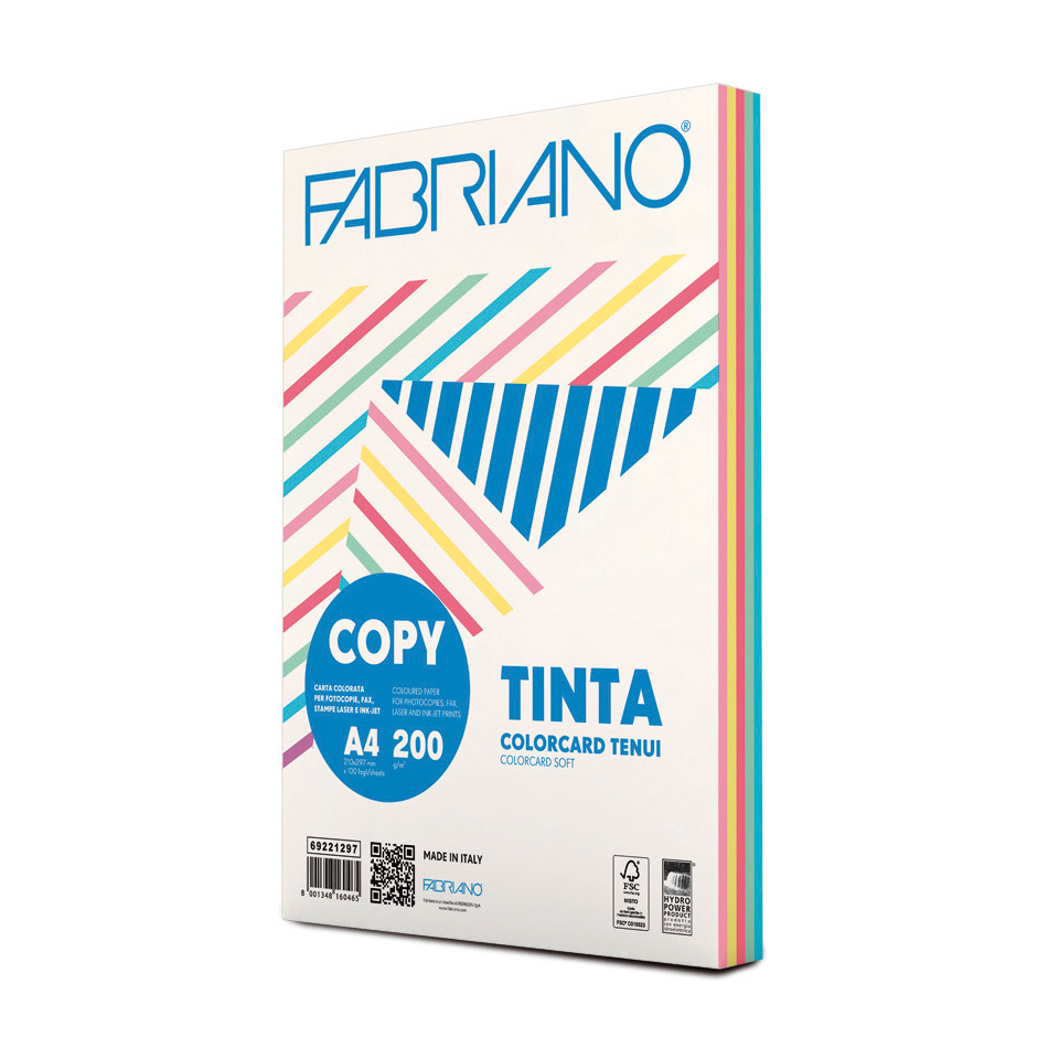Carta colorata Copy Tinta 200g/m² Fabriano A4 – colori tenui – 69221297 (risma 100 fogli)