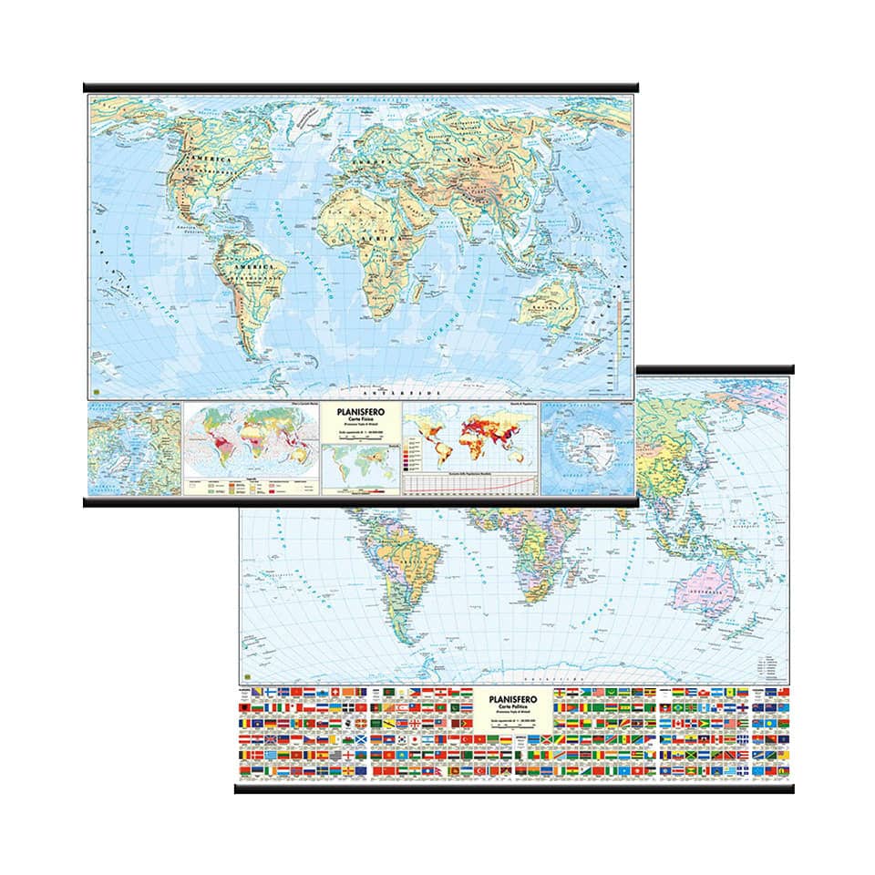 - Descrizione prodotto: Carta murale bifacciale con geografia politica e fisica