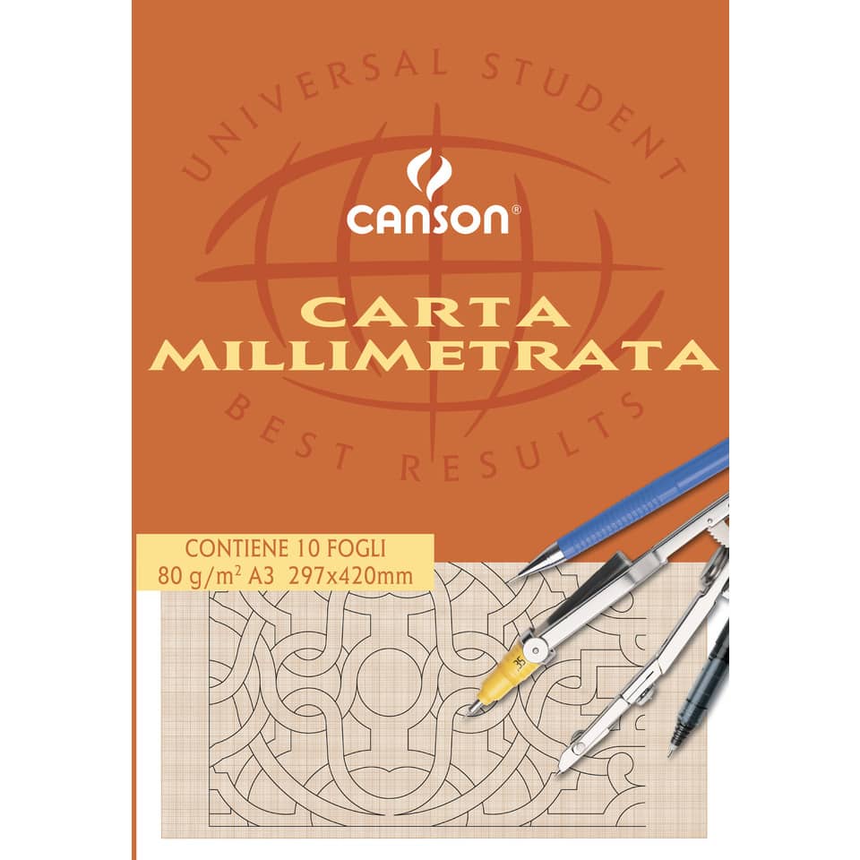 Blocco da disegno CANSON carta millimetrata bianco/arancio 80g/m² 10 fogli A3 – C200005824
