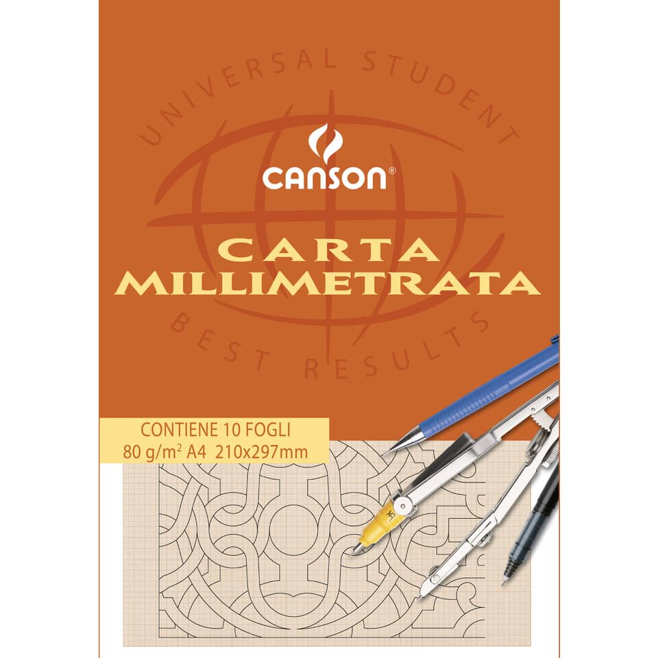 Blocco da disegno CANSON carta millimetrata bianco/arancio 80g/m² – 10 fogli A4 – C200005812