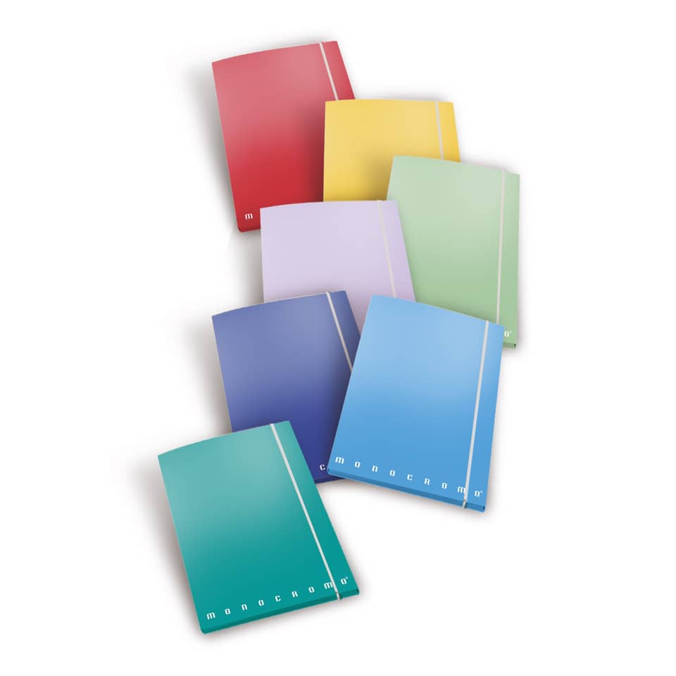 Cartella a 3 lembi con elastico Pigna Monocromo - A4 26x35,5x1,2 cm dorso 1,2 colori assortiti - 0217563