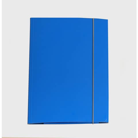 Cartelle in cartone plastificato dai colori brillanti con alette e chiusura ad elastico. Spessore 0.8mm, formato 25x34 cm. Colore azzurro.
