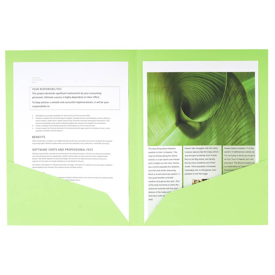 Cartelle doppia tasca in cartoncino 220 g/m² certificato FSC. La chiusura ad L delle 2 alette conserva perfettamente i documenti. Formato esterno 24x32 cm. 5 colori assortiti.
