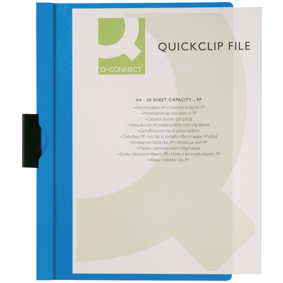 In conclusione, la cartellina con clip Q-Connect PVC 22x30,7 cm blu rappresenta una soluzione efficiente, pratica e duratura per l'organizzazione e l'archiviazione di documenti, adatta a diverse esigenze e contesti. Si tratta di un articolo versatile, facile da usare e da trasportare, che offre un ottimo rapporto qualità-prezzo.