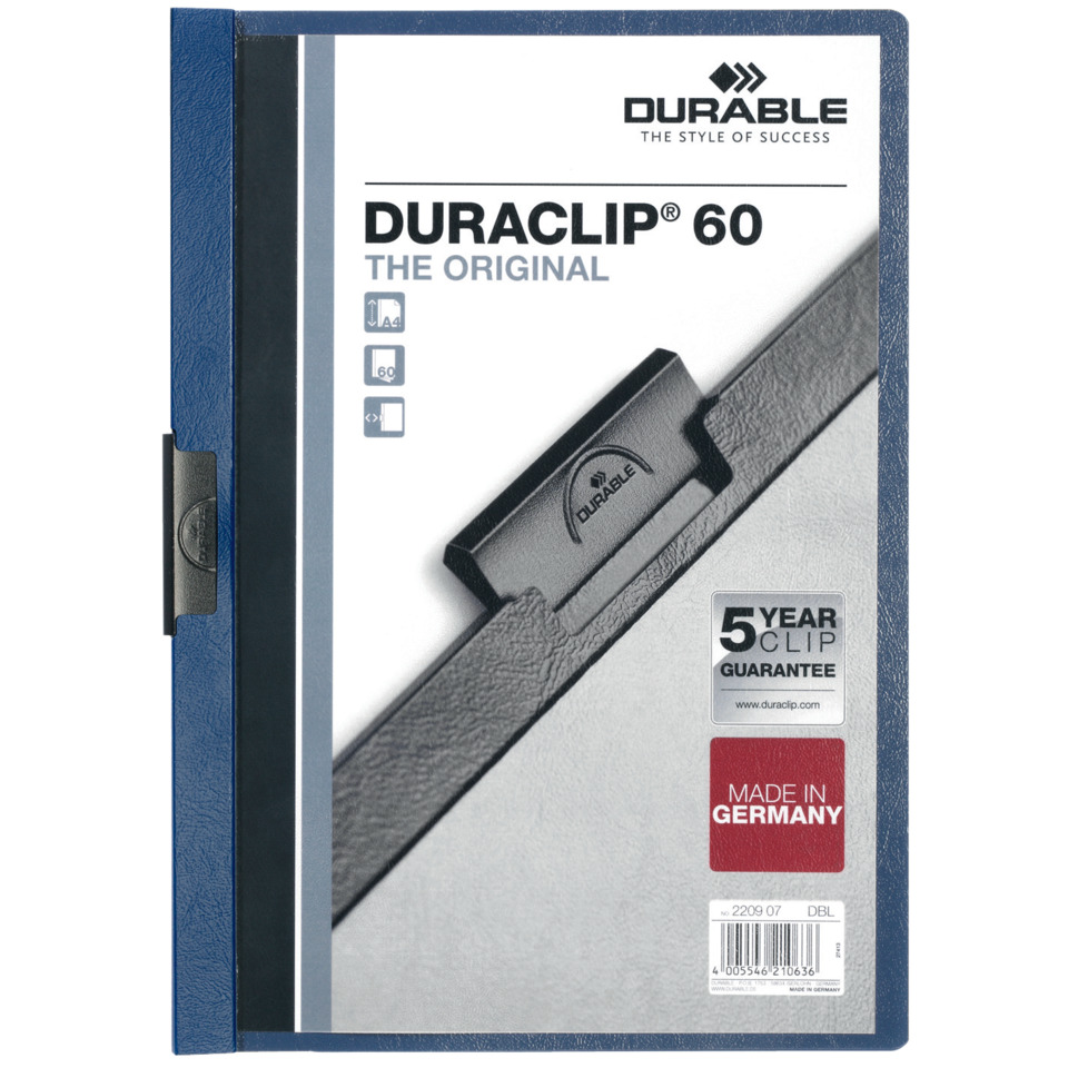 Cartellina con clip Durable DURACLIP® A4 – Dorso 6 mm – capacità 60 fogli in PVC Blu – 220907