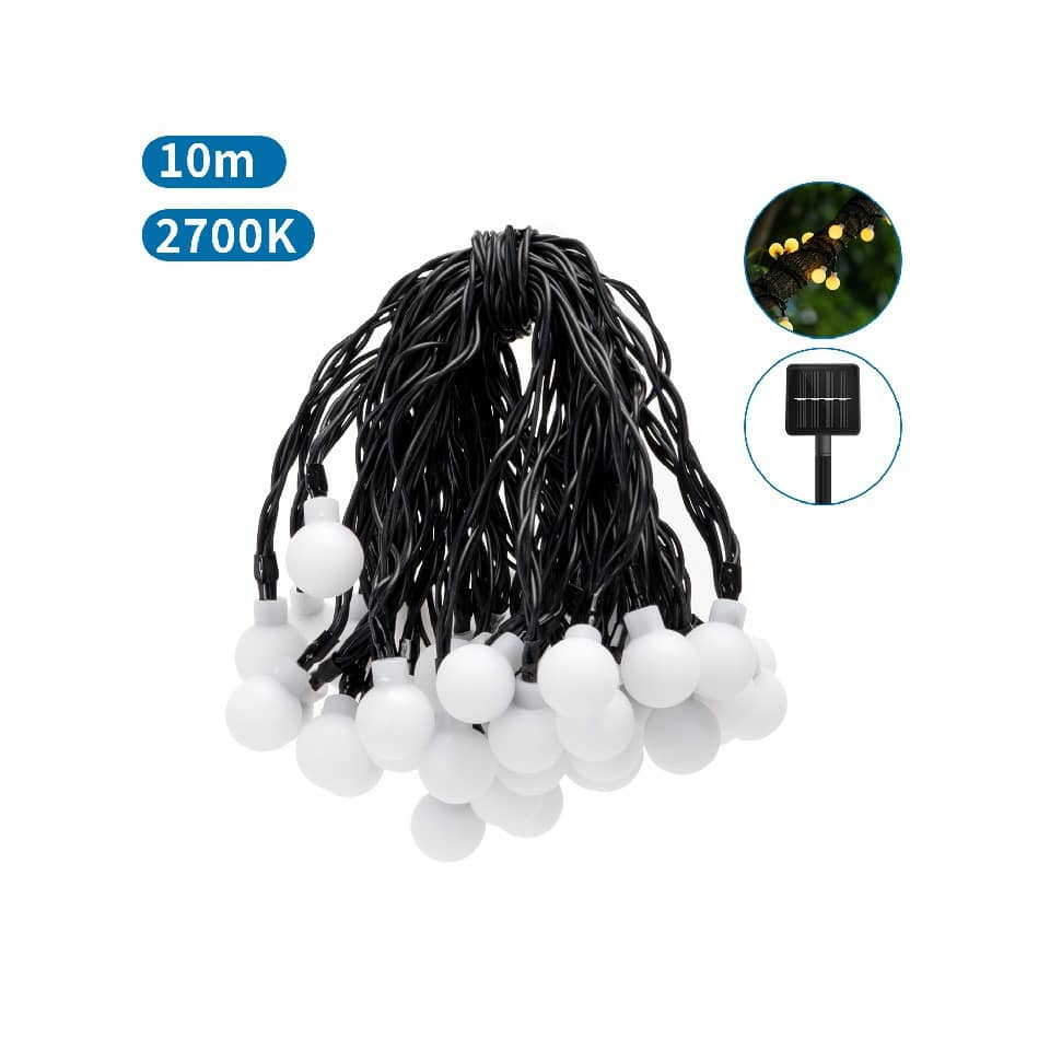 Catena luminosa LED da esterno Aigostar con pannello solare 50 lampadine LED a sfera opache luce calda 12 m – B10202H8V