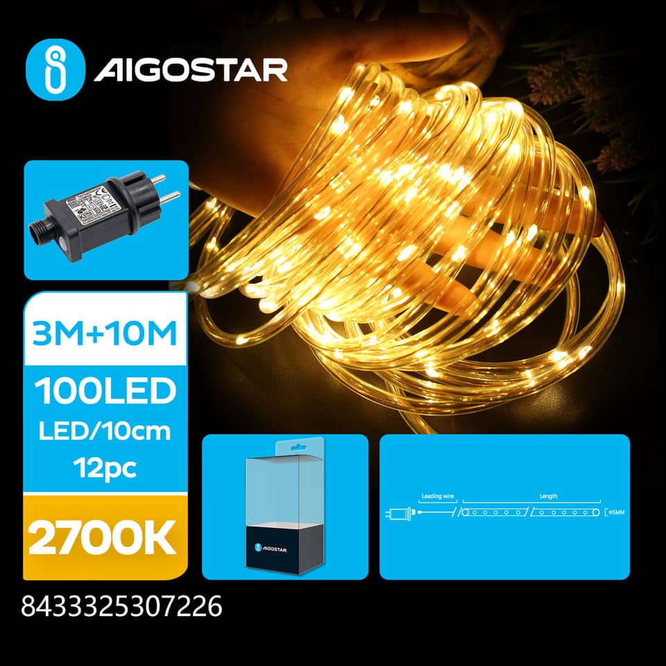 Catena luminosa tubolare per interni ed esterni a basso voltaggio Aigostar luce calda 2700K 10 m 100 led – 307226