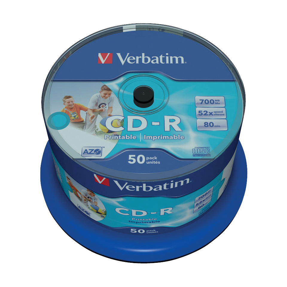 CD Verbatim – CD-R – 700 Mb – 52x – Super AZO stampabile – Spindle (conf.50)