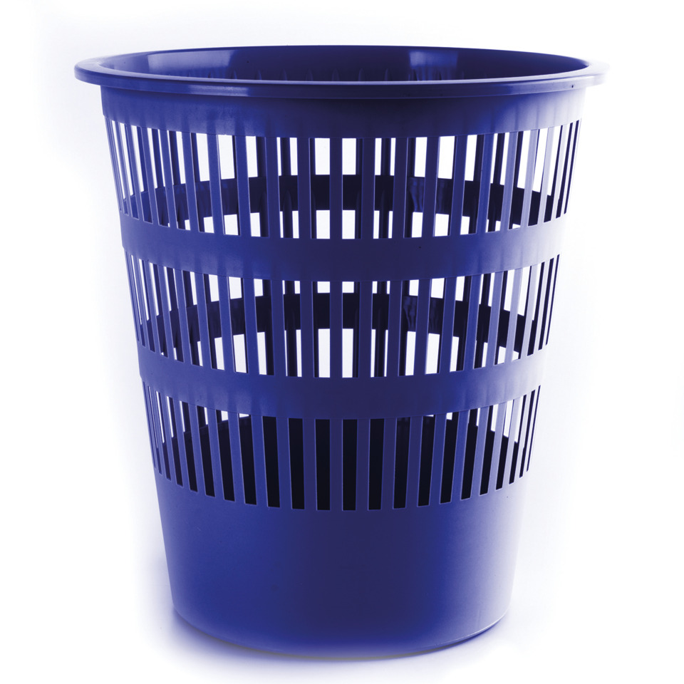 Cestino gettacarte Donau a rete, capacità 12 litri. Realizzato in PP ecologico resistente alle crepe, con struttura traforata dall'estetica curata, ideale per i piccoli rifiuti d'ufficio. 100% riciclabile, privo di materiali nocivi e certificato EN71. Dimensioni: diametro 275 mm, altezza 295 mm. Colore blu.