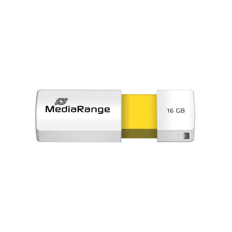 Le unità flash MediaRange offrono qualità e affidabilità. Ideali per l'archiviazione e lo scambio di dati. La connessione USB consente di accedere ai dati in modo sicuro e conveniente. Compatte, facili da trasportare. Velocità di lettura 12 Mb/s, velocità di scrittura 5 Mb/s. Colore bianco/giallo, capacità 16 Gb.