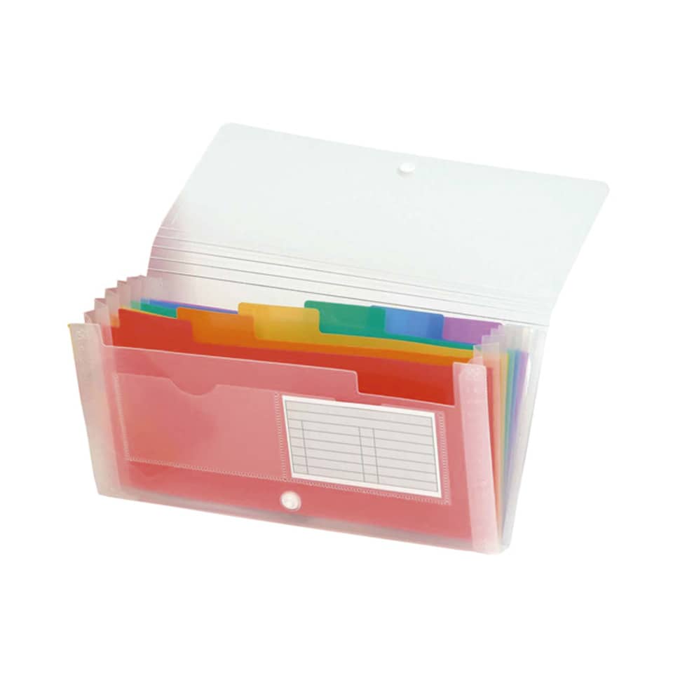 Classificatore 7 scomparti Crystal Colours, chiusura con bottone, Ppl cristallo rigato 700 micron, dorso estensibile, scomparti multicolori, F.to 18x10cm
