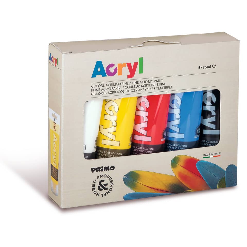 Colore acrilico fine Primo H&P 75 ml - conf.5 tubetti colori primari assortiti