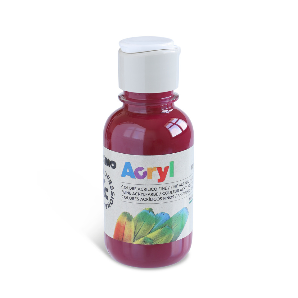 Il colore acrilico Primo in bottiglia PET con tappo dosatore da 125 ml, tonalità bordeaux, rappresenta una soluzione versatile per artisti, hobbisti e professionisti che necessitano di una pittura ad acqua di alta qualità. Questo prodotto offre un'eccellente combinazione di vivacità cromatica, facilità d'uso e praticità, ideale per diverse superfici e tecniche pittoriche.