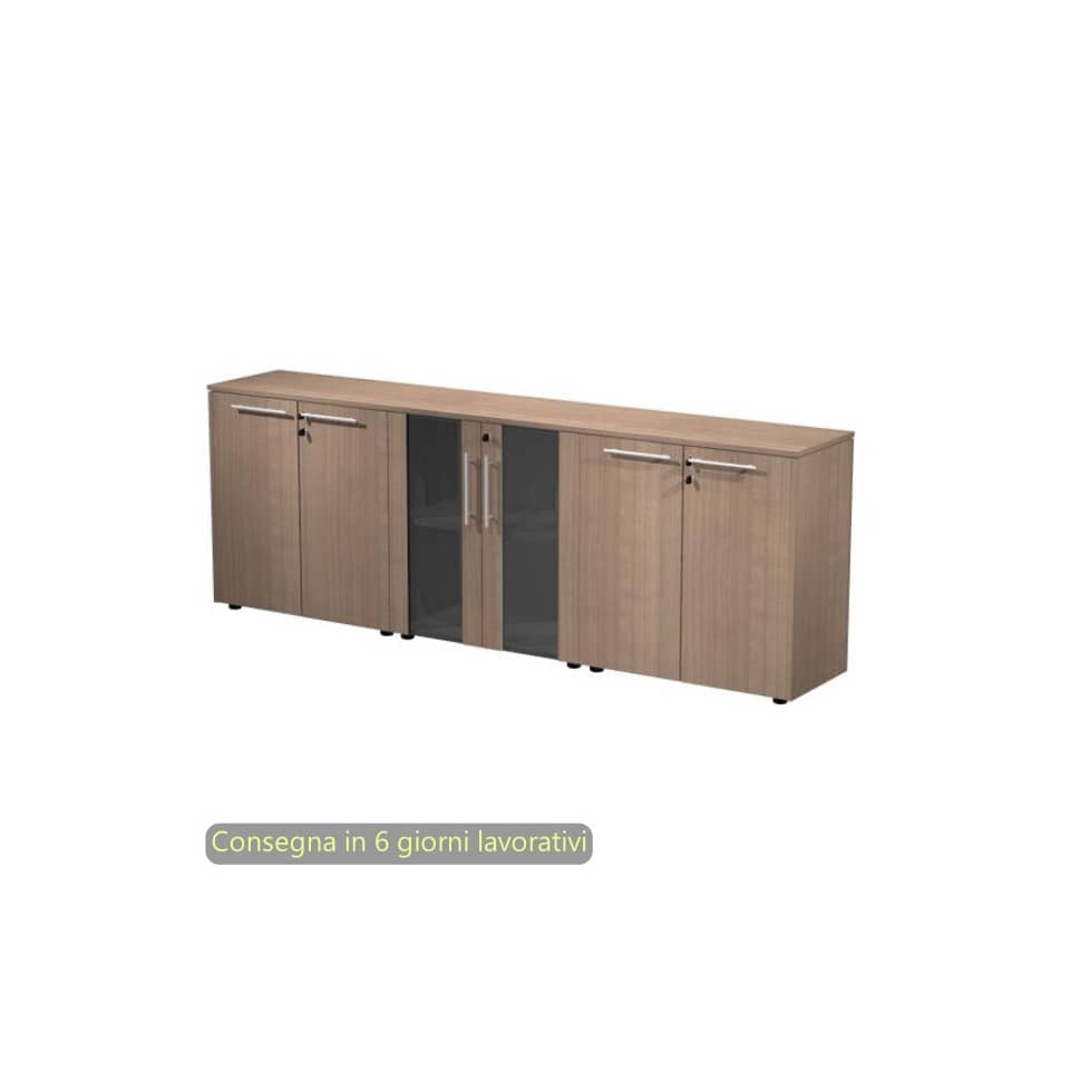 Composizione tre armadi bassi 2 ante vetro 242,8x43xh.81,4 cm Flora Artexport Noce arabis