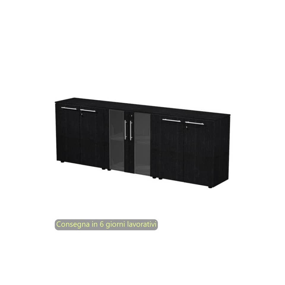 Composizione tre armadi bassi 2 ante vetro 242,8x43xh.81,4 cm Flora Artexport Nero venato frassino – 930T-67×2-68/8