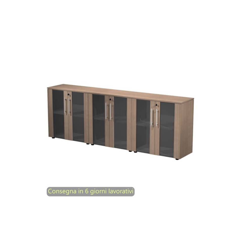 Composizione tre armadi bassi con ante vetro/mel. 242,8x43xh.81,4 cm Flora Artexport Noce arabis – 930T-68×3/K