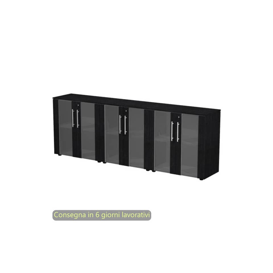 Composizione tre armadi bassi con ante vetro/mel. 242,8x43xh.81,4 cm Flora Artexport Nero venato frassino
