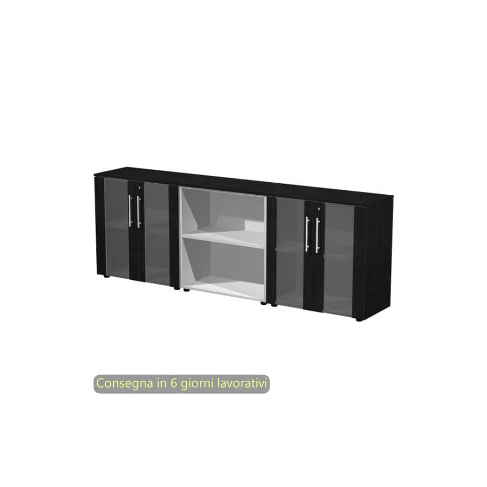 Composizione tre armadi bassi due coppie di ante vetro 242,8x43xh.81,4 cm Flora Artexport Nero venato frassino
