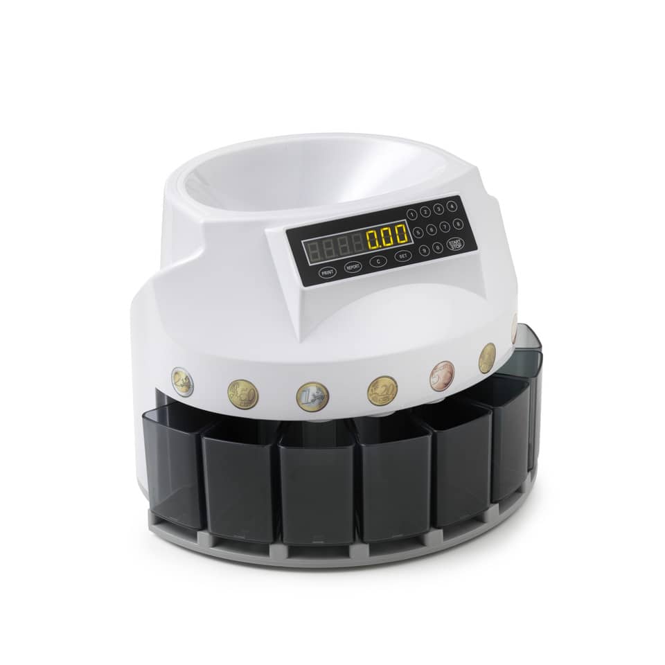| Altre caratteristiche: | funzione batch (impostazione del numero di pezzi da conteggiare). Report di conteggio a display e stampabile. Capacità di carico: 300/500 monete - capacità cassetti 80/300 monete. I cassetti sono sostituibili con 8 vaschette a tubo, acquistabili separatamente |