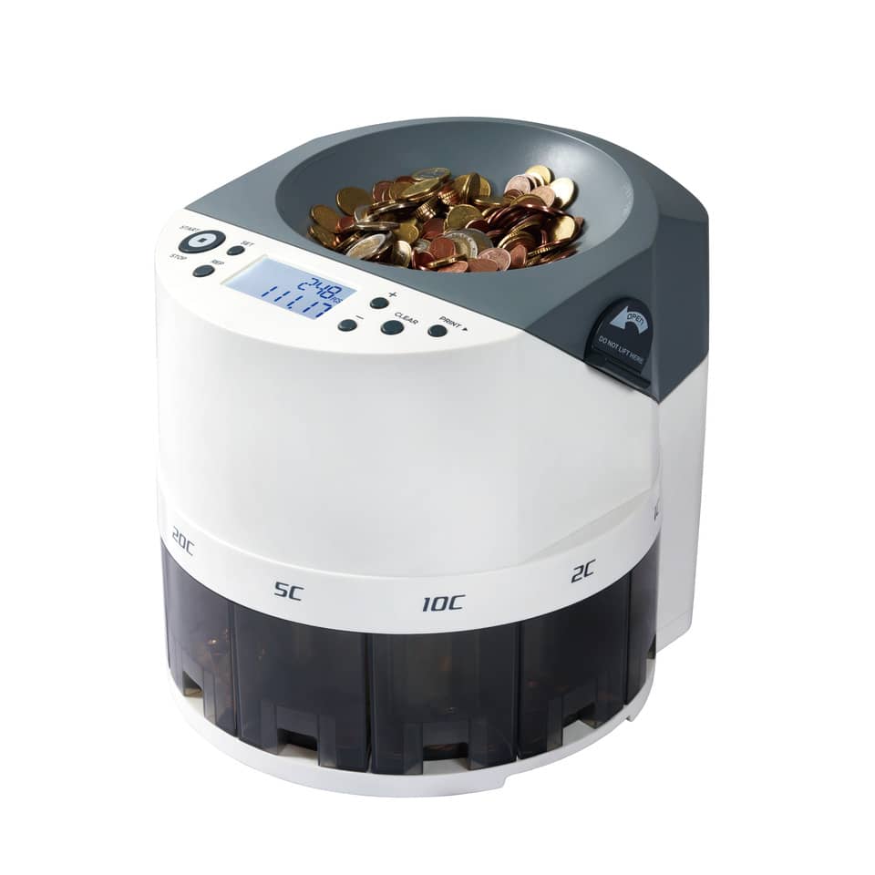 | Altre caratteristiche: | funzione batch (impostazione del numero di pezzi da conteggiare). Report di conteggio a display e stampabile. Capacità di carico: 1.000 monete - capacità cassetti 100/400 monete |