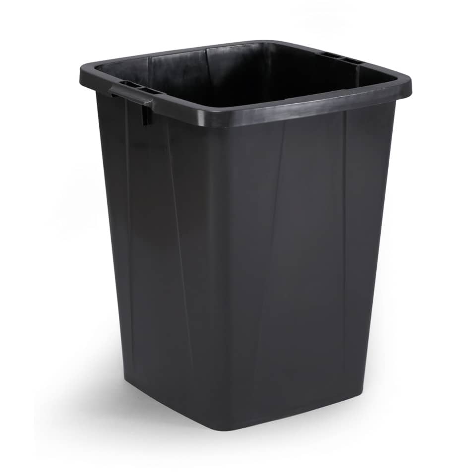 Contenitore quadrato in polipropilene capacità 90 litri, dotato di maniglie per agevolarne il trasporto. Più unità affiancate sono adatte per la raccolta differenziata in tutti gli ambienti di lavoro in cui si necessita una grande capacità di stoccaggio. Lavabile e indeformabile fino a 120°C per una perfetta sterilizzazione. Senza coperchio. Dimensioni 520 x 490 x 610 mm (LxPxH). Colore nero.