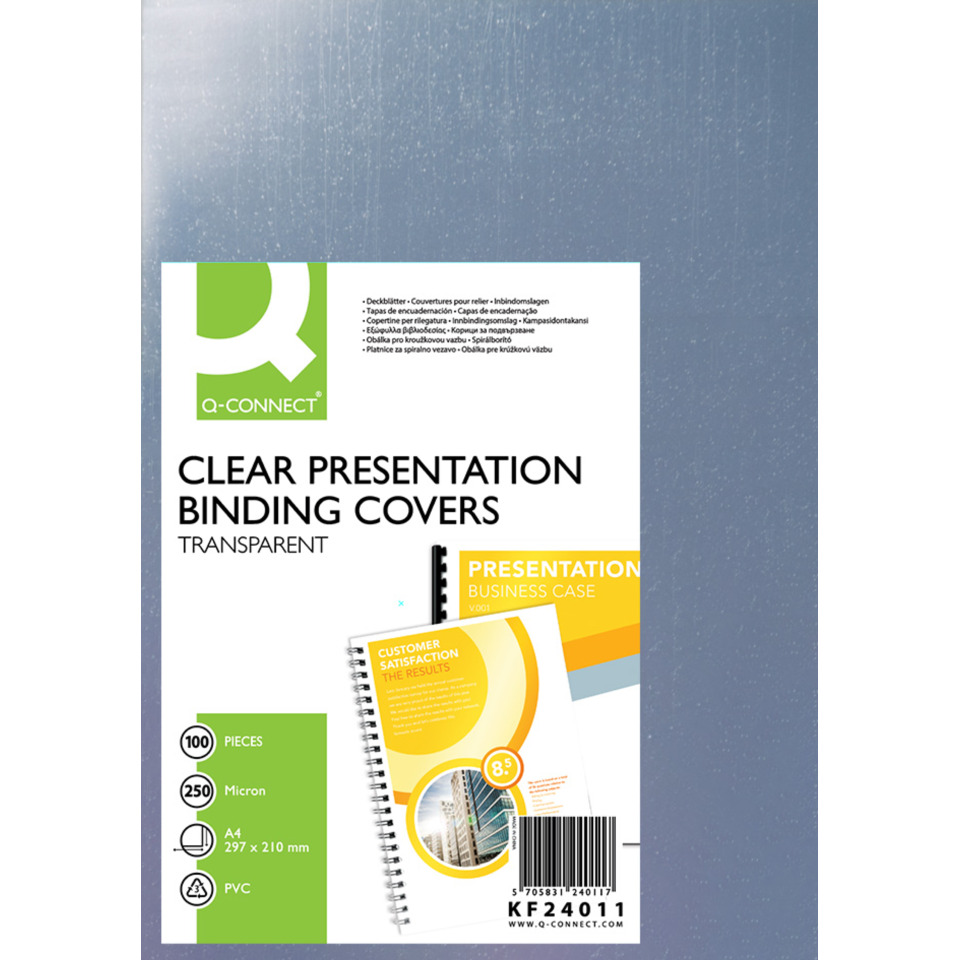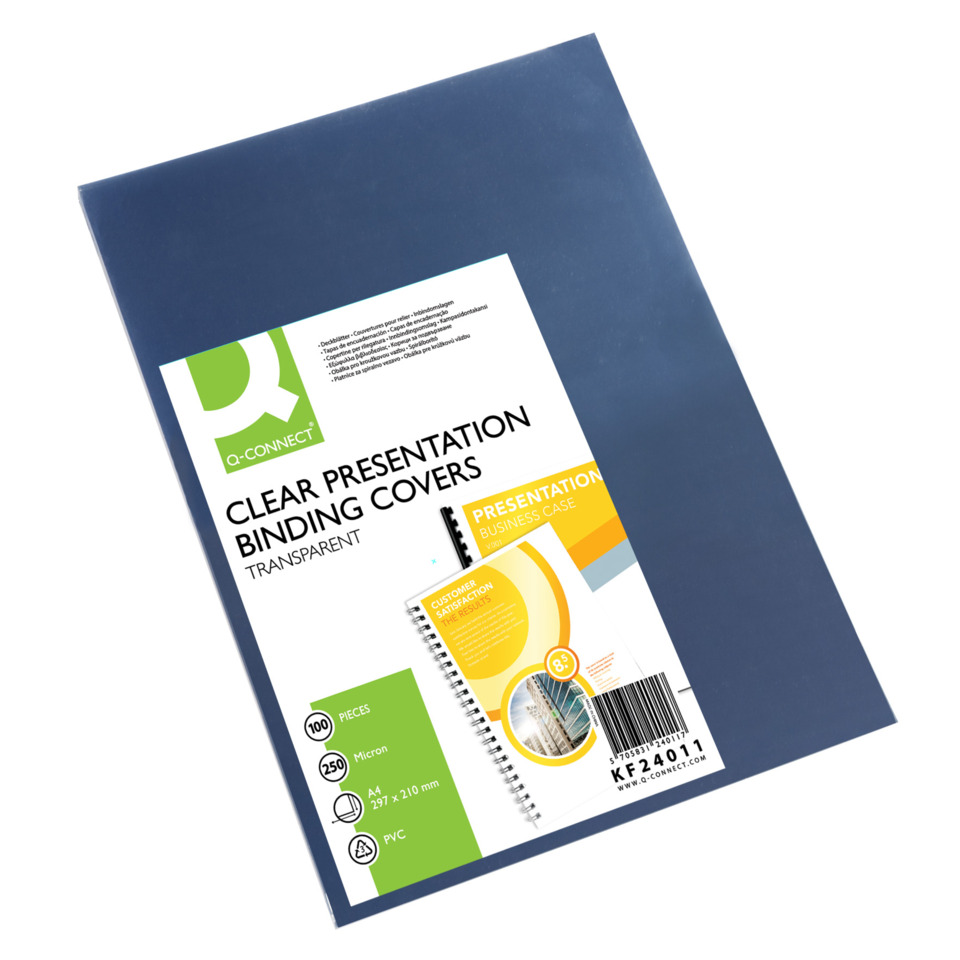 Copertine per rilegatura Q-Connect A4 PVC 250µm Trasparente - KF24011 (conf.100)