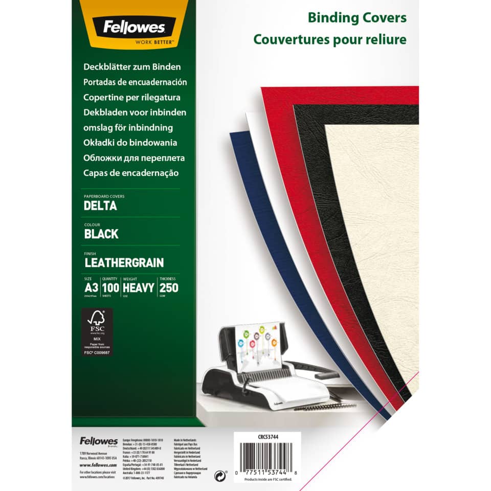 Copertine per rilegatura in similpelle A3 Fellowes Delta – cartoncino goffrato – 250g/m² – Nero (conf.100)