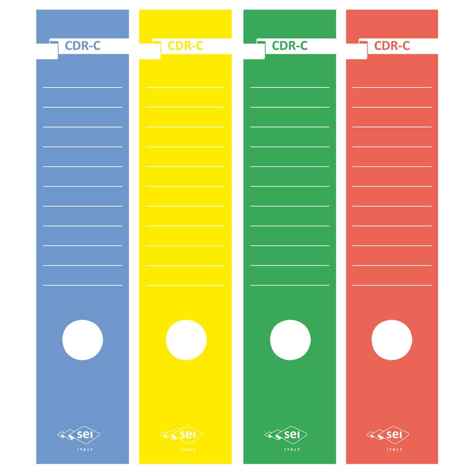 Copridorso autoadesivi in carta stampata con foro adattabile a qualsiasi registratore. Retro adesivo coprente.Disponibili in 4 colori
