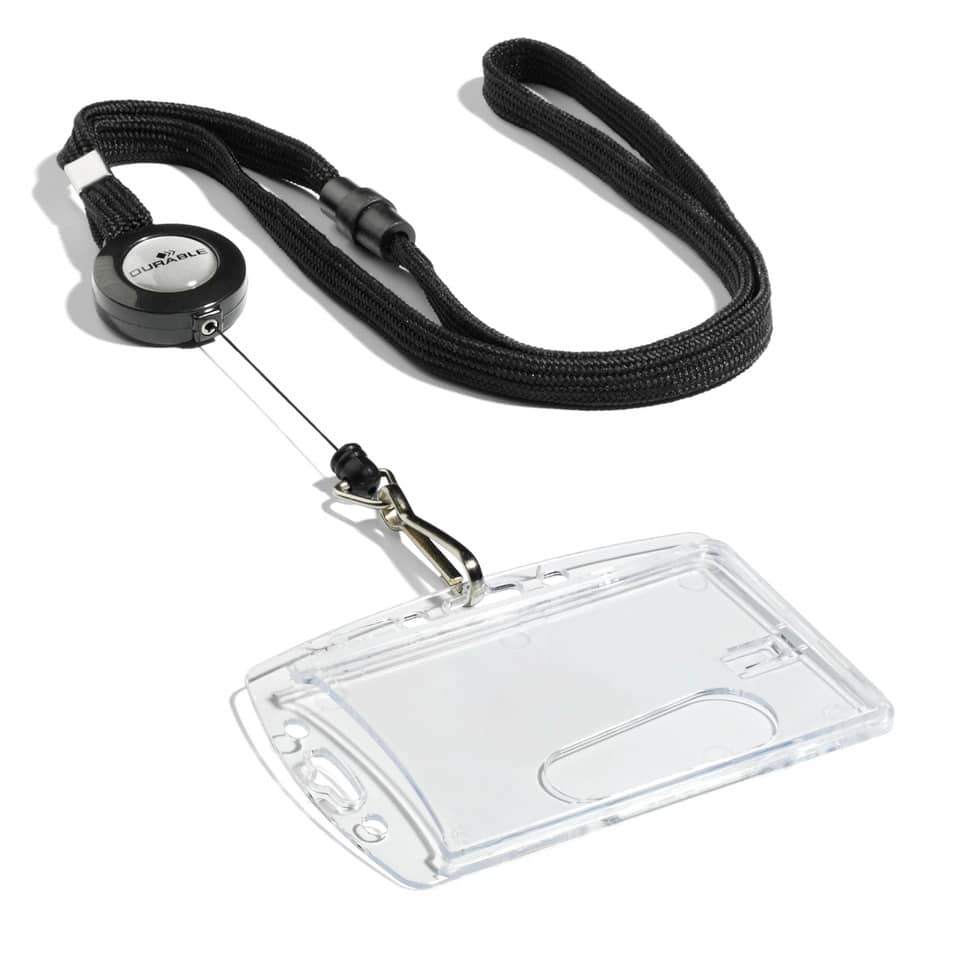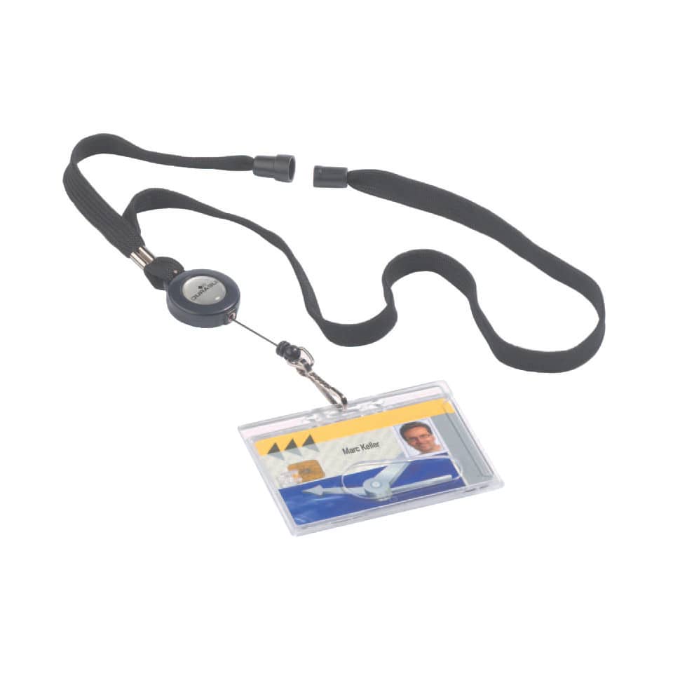 Il cordoncino nero incluso ha una lunghezza adeguata per consentire una lettura agevole del badge senza creare ingombri. La lunghezza esatta è progettata per garantire un equilibrio ottimale tra libertà di movimento e sicurezza del badge.