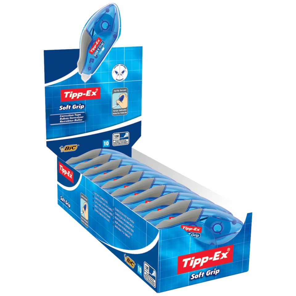 Il correttore Tipp-Ex Soft Grip si maneggia facilmente e assicura un controllo eccellente grazie al design morbido dell’impugnatura. Ha un nastro bianco altamente opaco appositamente progettato per aderire alla pagina. Asciuga all’istante per riprendere subito a scrivere. Contiene 10 m di nastro correttore ultra resistente. È di alta qualità: il nastro bianco scorre sulla pagina senza intoppi. Si può riavvolgere il nastro e controllare quanto ne resta attraverso il corpo trasparente. Con oltre 50 anni di esperienza nel settore della correzione, Tipp-ex è il marchio n° 1 nella maggior parte dei paesi europei.