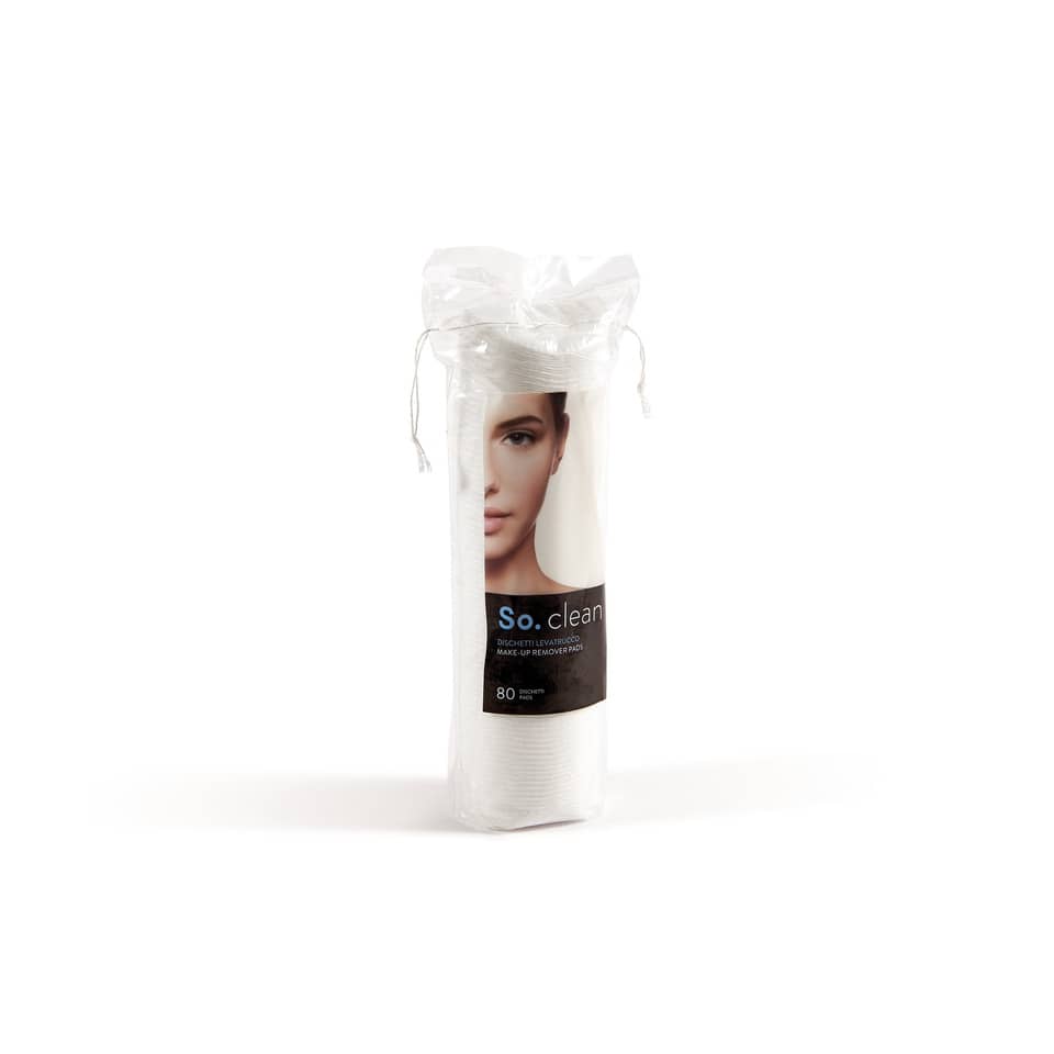 I dischetti levatrucco So Clean, disponibili in una confezione da 80 pezzi di colore bianco, rappresentano una soluzione pratica ed efficace per la detersione quotidiana della pelle. Questi dischetti offrono un'alternativa delicata e confortevole all'utilizzo di asciugamani o altri metodi più abrasivi, contribuendo a mantenere la pelle pulita, sana e radiosa.