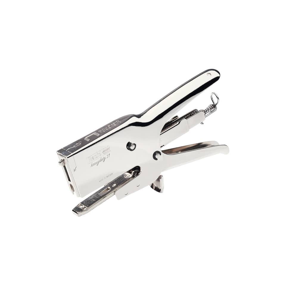 Solida e potente cucitrice a pinza per alti spessori in acciaio di prima scelta e finitura nichelata. Indicata per materiali pesanti come cartone, tappeti, sacchi. Apertura anteriore ampia.