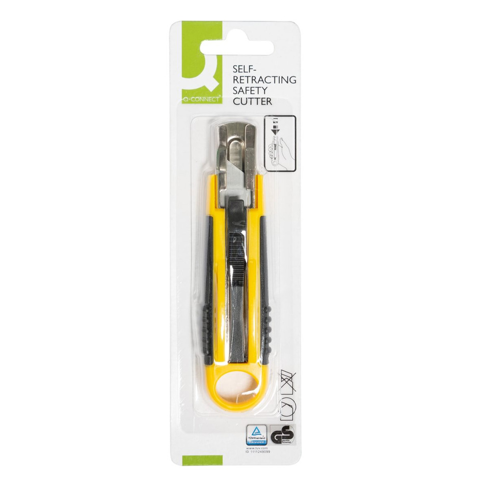 Cutter con lama 6 cm a scatto Q-Connect in blister - giallo/nero (conf.12)