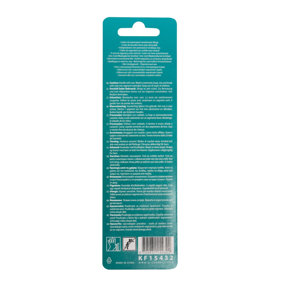 Cutter con lama a scatto in blister. La lama è a rientro automatico e ha una lunghezza di 6 cm. Realizzato in ABS (riciclato al 5%) + TPR. Codice produttore: KF15432