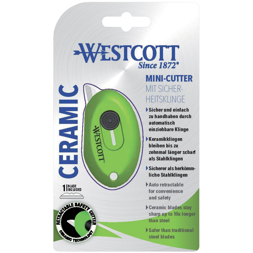 Cutter di sicurezza Westcott con mini lama a scatto in ceramica lunghezza 31 mm verde – E-16474 00