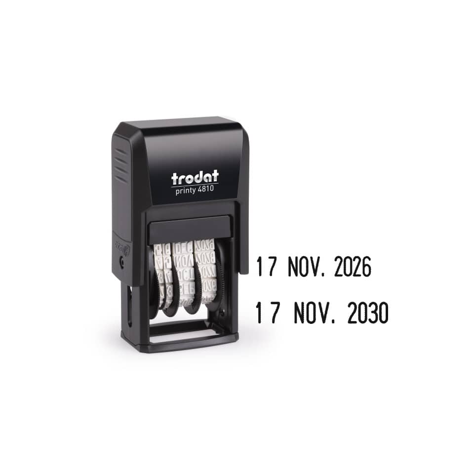 Il Datario autoinchiostrante TRODAT PRINTY 4810 si distingue per la sua robustezza e per la qualità dei materiali impiegati. La sua struttura in plastica resistente garantisce una lunga vita operativa, anche con un utilizzo intensivo. Il meccanismo autoinchiostrante elimina la necessità di tamponi separati, rendendo l'utilizzo più rapido e pulito. Questo dispositivo si configura come uno strumento essenziale per chi gestisce un volume elevato di documenti, offrendo un'alternativa pratica ai timbri tradizionali. La dimensione dell'impressione, pari a 3,8 mm, è ideale per la maggior parte delle applicazioni comuni, come l'apposizione di date, coordinate bancarie, loghi aziendali o informazioni di contatto. La tecnologia impiegata nel sigillo garantisce un'impressione uniforme e leggibile, contribuendo a un'immagine professionale. Questa soluzione è particolarmente vantaggiosa per chi necessita di un timbro portatile, grazie alle sue dimensioni compatte e al peso ridotto. È un valido sostituto del timbro a secco, offrendo maggiore praticità e velocità di esecuzione.