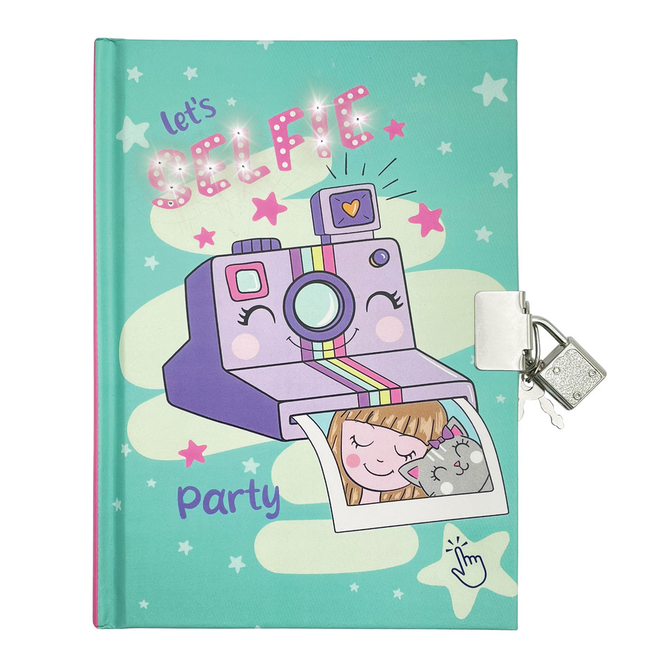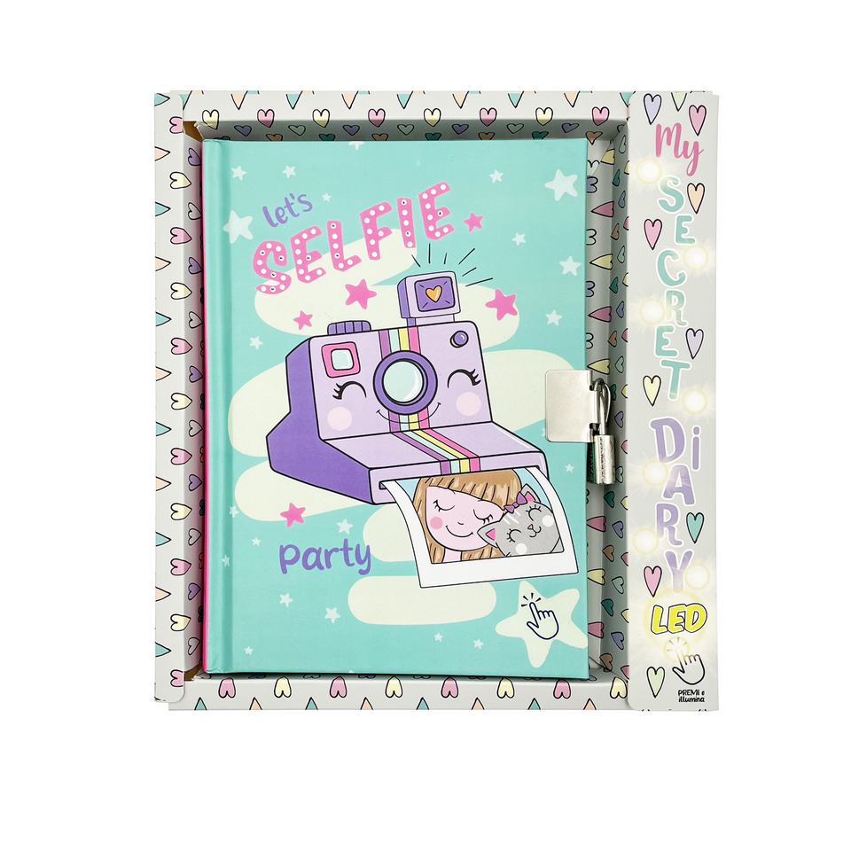 Diario dei segreti composto da 80 pagine con copertina con LED, lucchetto e 2 chiavi. Disponibile in confezione regalo appendibile.