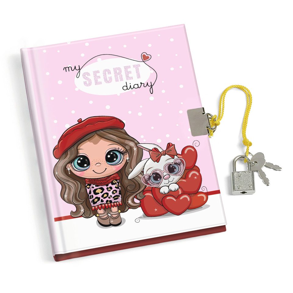 Diario dei segreti composto da 80 pagine con copertina glitterata, lucchetto e 2 chiavi. Disponibile in 3 soggetti Sweet assortiti.