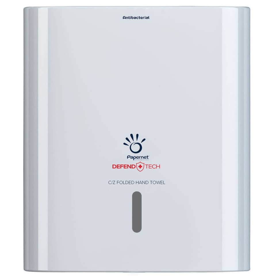 Dispenser antibatterico con adattatore Papernet Defend Tech per asciugamani piegati a C e Z Bianco – 33,6x30x14,5 cm